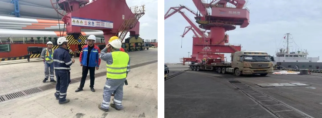 作業(yè)過程中,射陽港區(qū)選派經驗豐富、素質過硬的門機司機進行卸船作業(yè),根據貨輪進港前期雙方制定的裝貨方案與綁扎方案,全力攻堅推進裝卸作業(yè)圓滿完成?!凹涌焖俣龋〈_保安全!我們盡量在30個小時內完成這批貨物的裝卸!”他的聲音再次響起,不斷激勵著碼頭全體作業(yè)人員。