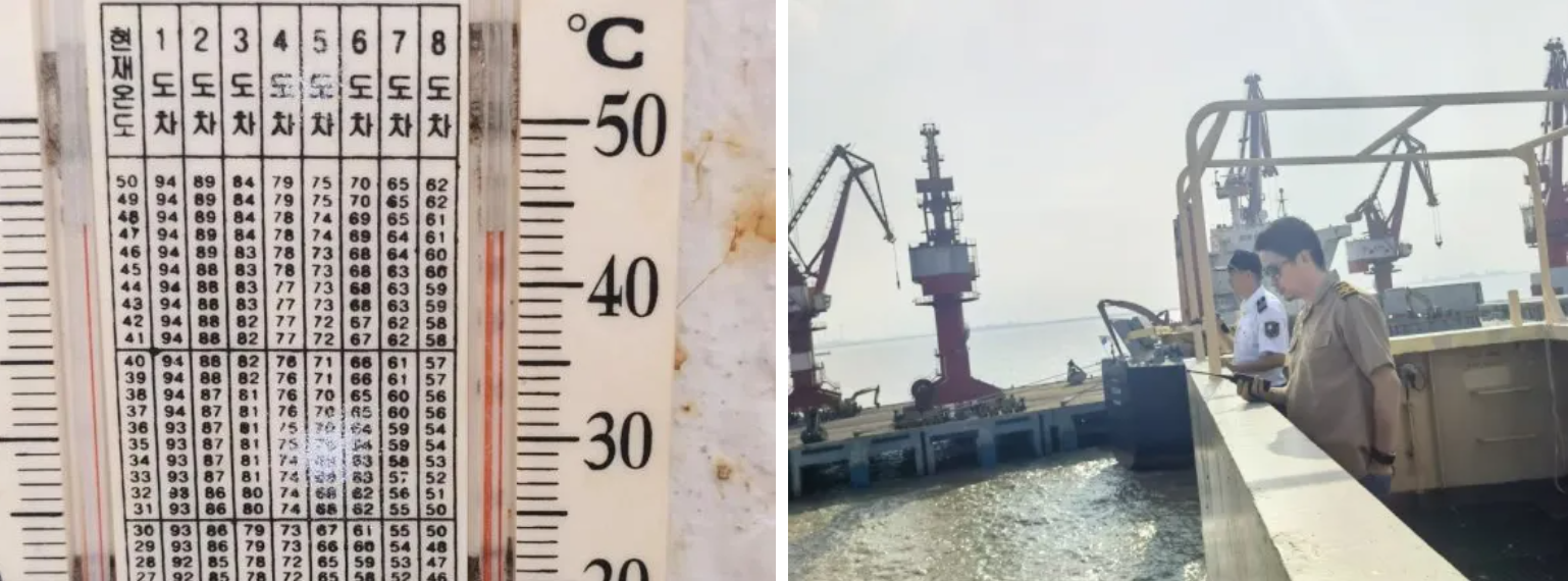 “蒸烤”在一線,持續(xù)的高溫陰雨天氣,讓引航工作一直處于蒸汽籠內(nèi)的濕漉環(huán)境,每一次的引航都是一次全身“濕身秀”。尤其近日引領(lǐng)的滿載鐵礦的“雪松”輪,甲板上的溫度達(dá)到了40℃之上,加上雨水蒸發(fā)的一陣又一陣熱氣,模糊著視線的同時(shí)也在“蒸烤”著引航員的身心。即便如此,引航員們依舊一艘又一艘的引領(lǐng)著船舶安全進(jìn)出港航行。