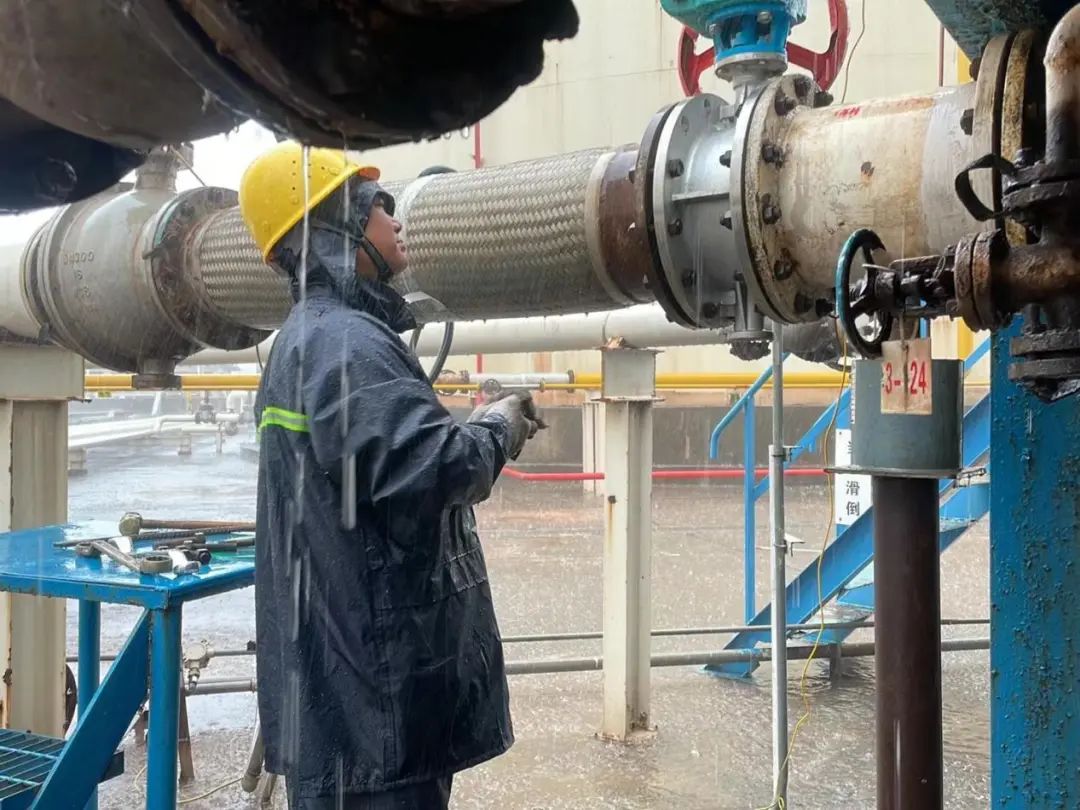 當(dāng)班人員陳紀(jì)云立即向值班領(lǐng)導(dǎo)匯報了情況,一場與時間賽跑的檢修行動隨之展開。值班領(lǐng)導(dǎo)迅速決策,通知組長周漢華緊急召集全體機(jī)電班組成員。時間緊迫,周漢華沒有絲毫猶豫,立即通過電話通知每位成員,在1小時內(nèi),港儲石化的微光創(chuàng)新班組已經(jīng)集結(jié)完畢。他們迅速分工合作,每一個環(huán)節(jié)都緊密銜接,每一個動作都準(zhǔn)確無誤。在這場與時間的較量中,再次展現(xiàn)了他們過硬的專業(yè)素養(yǎng)和高效的團(tuán)隊(duì)協(xié)作能力。