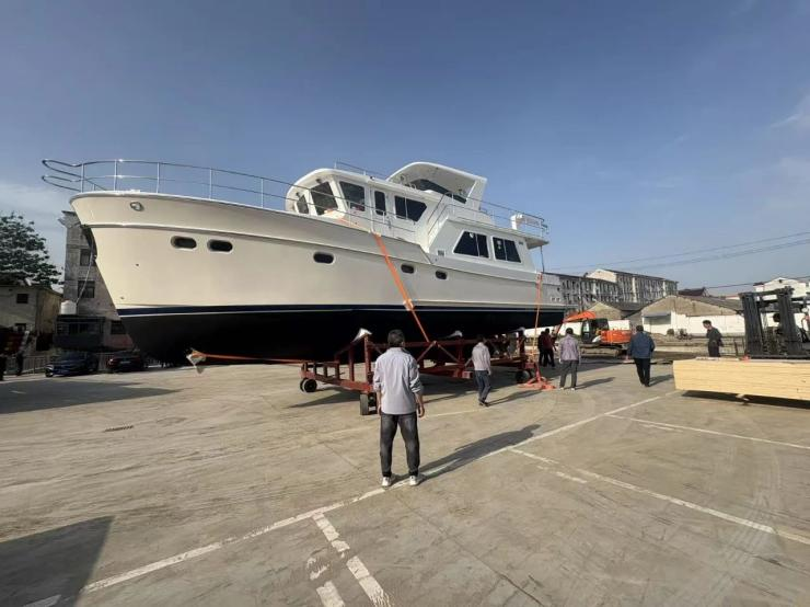 據(jù)悉,該游艇是瀚斯曼游艇公司今年生產(chǎn)的第5艘豪華游艇,長14.5米、寬5.2米、高7.5米,為三層結(jié)構(gòu),重量25噸。鑒于游艇體積龐大且附加值極高,公路運(yùn)輸成本高、難度大,航運(yùn)集團(tuán)主動出擊,積極對接瀚斯曼游艇公司,詳細(xì)介紹鹽城港集團(tuán)對美貨物的各項(xiàng)優(yōu)惠措施,全方位了解游艇結(jié)構(gòu),精準(zhǔn)剖析游艇的各項(xiàng)參數(shù),反復(fù)溝通運(yùn)輸難點(diǎn)堵點(diǎn),逐條提出可行性解決辦法,最終憑借一套完善的“海河聯(lián)運(yùn)”定制運(yùn)輸方案,成功承攬了這次出口運(yùn)輸任務(wù)。