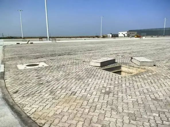 堆場區(qū)域,1處方形電力井蓋因施工疏忽未恢復(fù)井蓋,且未設(shè)置警示反光標(biāo)識,存在人員墜落風(fēng)險。