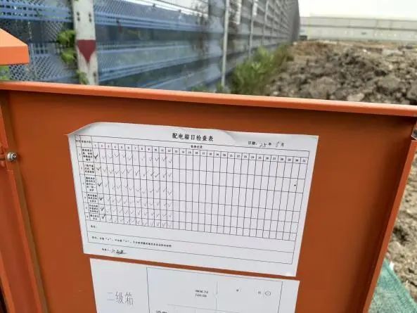 施工區(qū)域發(fā)現(xiàn)1個二級配電箱檢查記錄未及時更新,未做到每日一檢,存在漏電、觸電風(fēng)險。