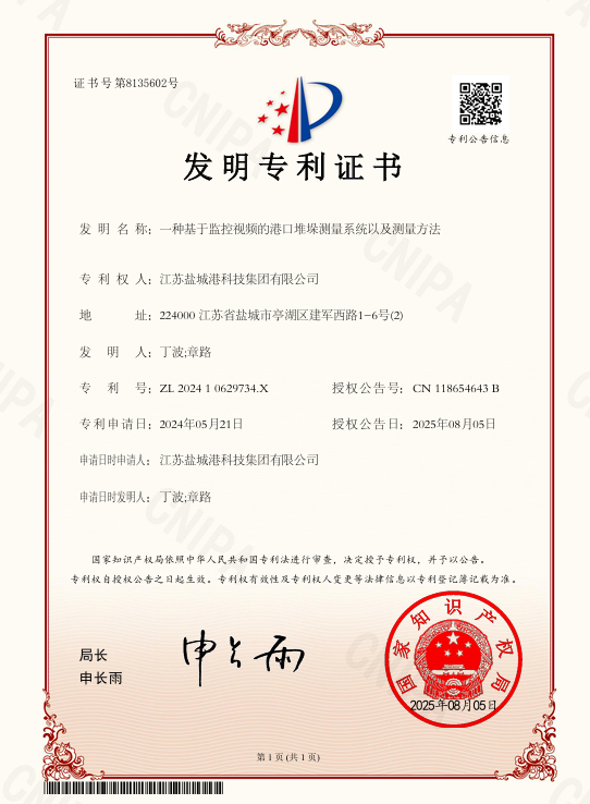 近日,集團(tuán)科技創(chuàng)新課題《基于港區(qū)視頻的港口堆垛智能化測量作業(yè)系統(tǒng)》成功斬獲雙項(xiàng)核心知識(shí)產(chǎn)權(quán)——《一種基于視頻監(jiān)控的港口堆垛測量系統(tǒng)及測量方法》發(fā)明專利與《散貨堆垛三維重建可視化系統(tǒng)》計(jì)算機(jī)軟件著作權(quán),同時(shí)系統(tǒng)已在響水港區(qū)散雜貨堆場實(shí)現(xiàn)試點(diǎn)應(yīng)用落地,不僅驗(yàn)證了技術(shù)的可行性與穩(wěn)定性,更標(biāo)志著集團(tuán)“從技術(shù)研發(fā)到成果轉(zhuǎn)化”的創(chuàng)新鏈路貫通,港口智能化升級(jí)邁出實(shí)質(zhì)性步伐。