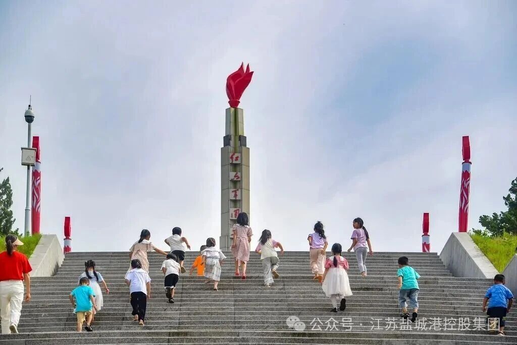 江西遂川,孩子們在大人的陪伴下,瞻仰紅六軍團(tuán)長征先遣紀(jì)念碑。